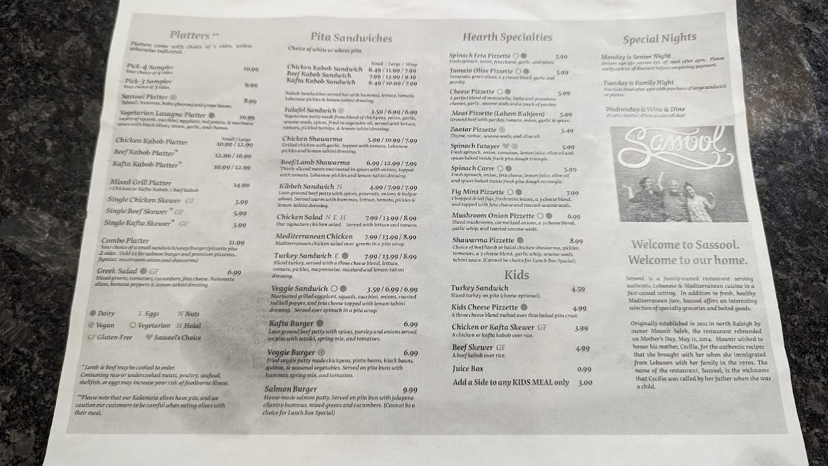 Sassool, located in Cary, NC, is a vibrant Mediterranean deli that offers a delightful culinary experience. With an extensive menu featuring everything from savory grilled meats to fresh salads and delectable bakery-level desserts, there's something for everyone. Renowned for their “white garlic whip” sauce and jalapeño hummus, the flavors are consistently praised as both bold and satisfying. The deli also includes a market stocked with spices and prepared foods for take-home convenience. Whether you dine in or cater an event, Sassool's commitment to freshness and quality makes it a beloved choice for food lovers.
